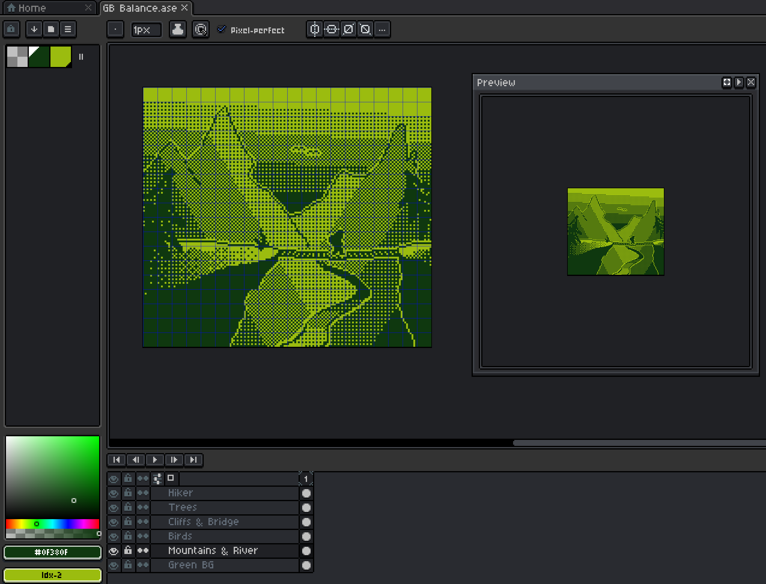 Picture designed for the GB Pixel Art Game Jam 2025. The theme was balance, and it had to be a 1-bit palette, in a 160px by 144px canvas, just like the original GameBoy!